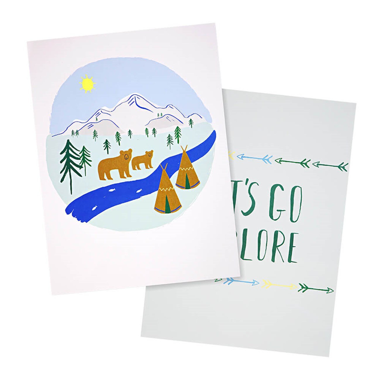 - Küçük maceraperestinizin odasını ilham verici posterlerle doldurun. Bu iki baskıda vahşi bir dağ manzarası ve 'Let's Go Explore' sloganı bulunuyor. İster çevçeveyle asın ister çerçevesiz. Çocuk odası ya da bebek odası için gözle görünür bir değişilik sağlayacak. Poster nedeniyle oda duvarlarında herhangi bir boya izi bırakmaz, tamamiyle çocukların kullanımına göre tasarlandı!