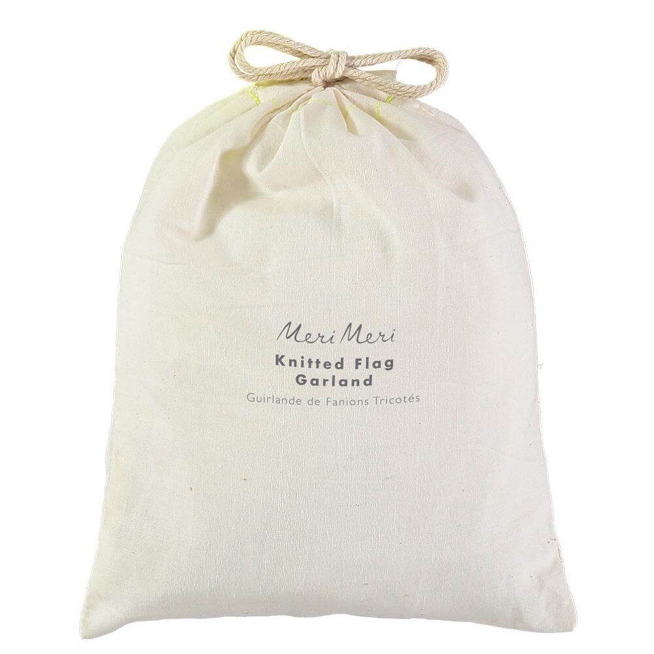 - 3 metre organik pamuk kordona dizili 4 farklı renkte 12 bayraktan oluşmaktadır. Büzgü torba çanta içerir.